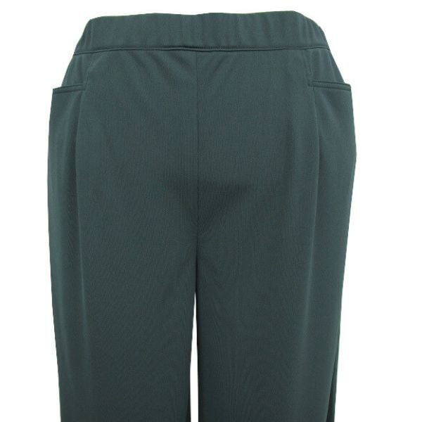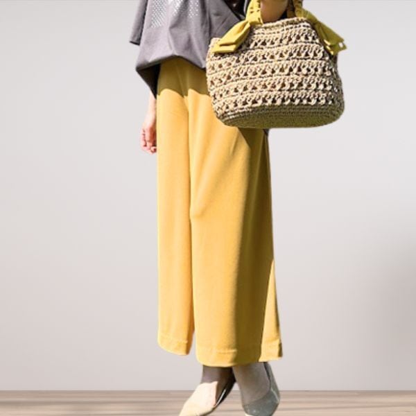 腰まわりはすっきりと見せつつ、裾にかけて程よく広がるラインで、脚のラインを拾いにくく体型カバーも叶えます。