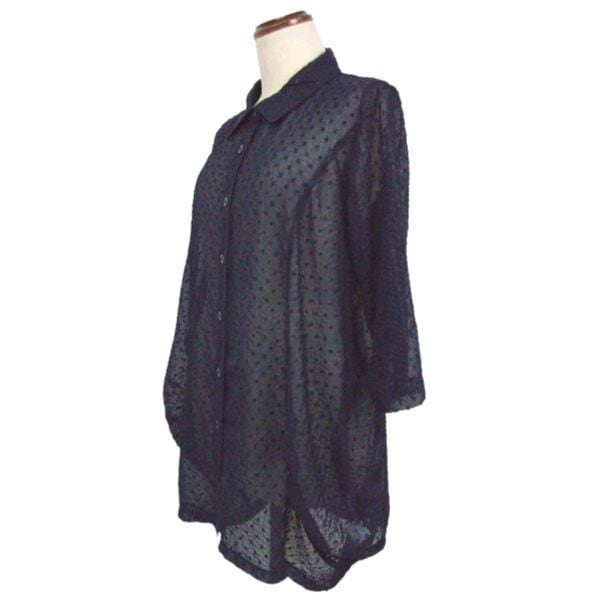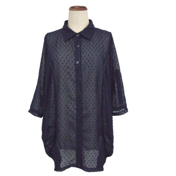 涼しげなシアーブラウスで、品の良さを演出するネイビーの一枚です!