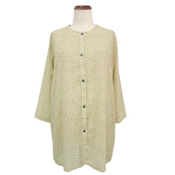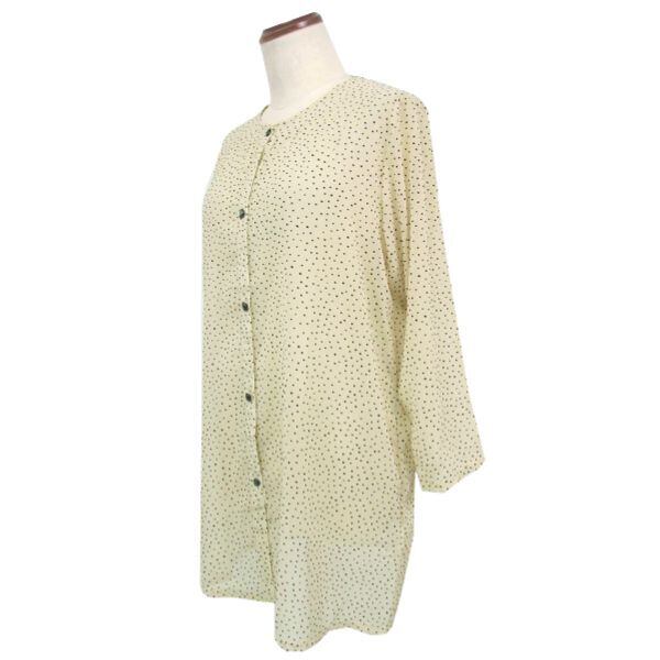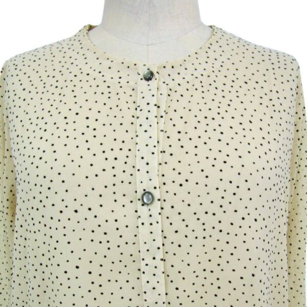 軽やかなベージュのシアーブラウスは、スタイリングを洗練された印象に仕上げてくれます。フロッキー加工が施されたドット柄が、シンプルながらも個性を引き立たせてくれます。