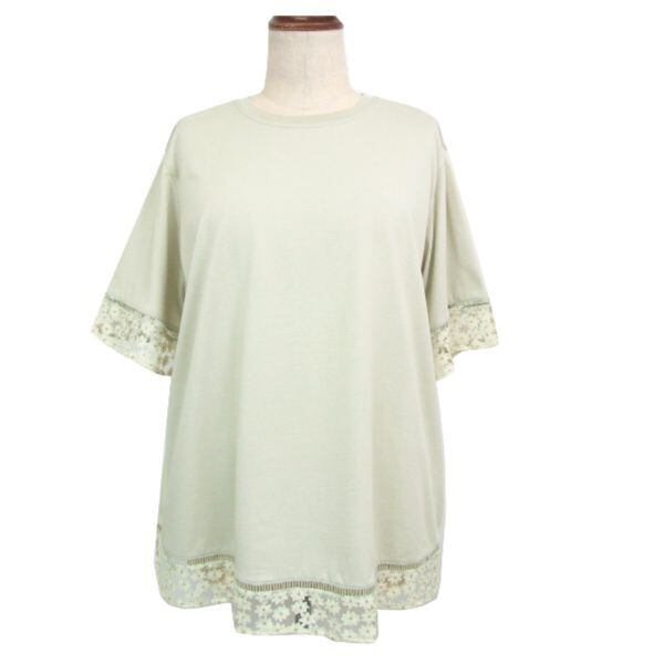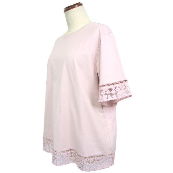 花柄刺繍レース使いカットプルオーバーは、華やかな花刺繍が目を引く一枚です。