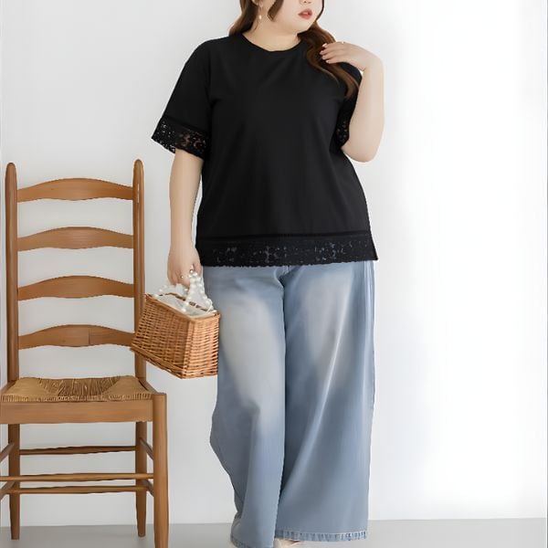 特徴的なレース使いが、シンプルながらも上品な印象を与え、様々なシーンで活躍できます。
