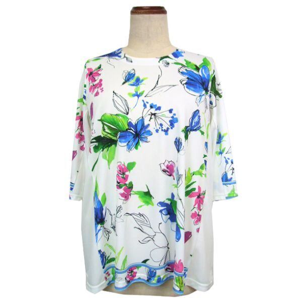 無地切替フラワー柄プルオーバー【QUINTY】は、シンプルな無地と華やかなフラワー柄が絶妙に組み合わさった魅力的なアイテムです。