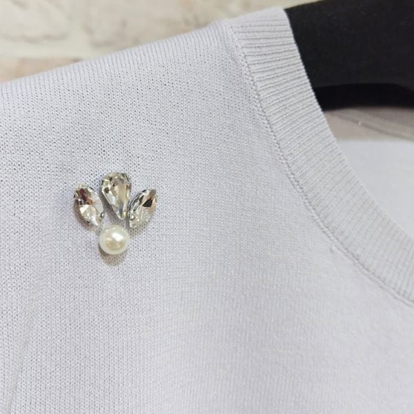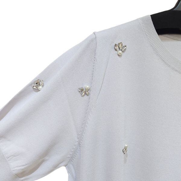 このプルオーバーは、小さめのパールとクリスタルを使用したビジューデザインが光り輝き、まさに大人の女性にふさわしい華やかさを演出します☆