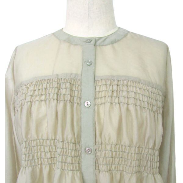 シャーリングシアーブラウス【SEPIA】は、エレガントなデザインと魅力的なシアー感が特徴の特別なアイテムです。
