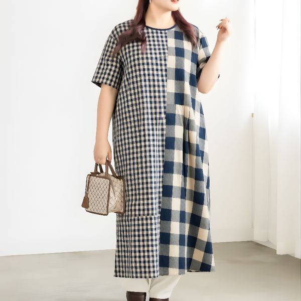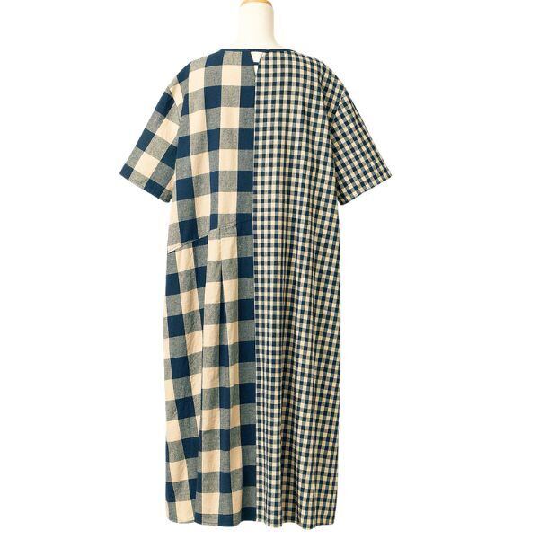 このワンピースは、チェック柄と無地の切り替えが絶妙に組み合わさり、スタイリッシュなシルエットを生み出します☆