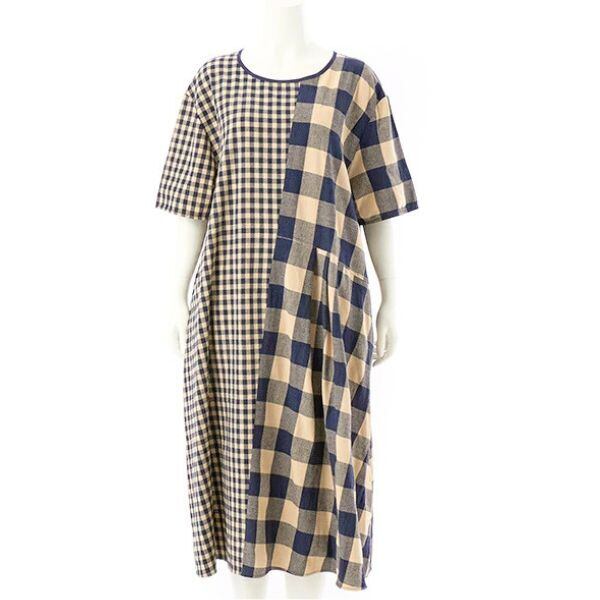 チェック切り替えワンピース【ALDILA】ネイビー ※限定販売